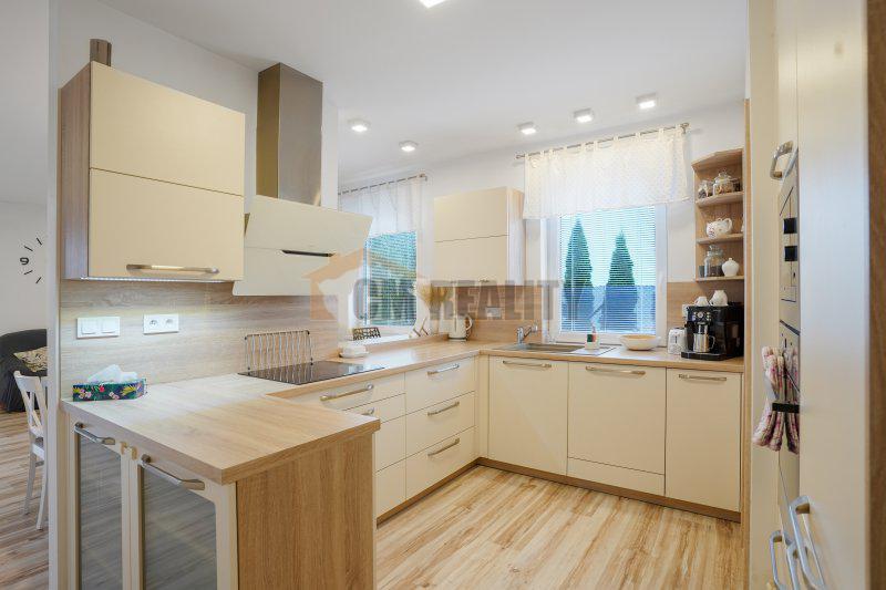 Kuchyňská linka byla vyrobena na míru firmou INFINI a je vybavena kvalitními spotřebiči Electrolux indukční varnou deskou, troubou, mikrovlnnou troubou, myčkou na nádobí a granitovým dřezem. Kování je značky Blum, součástí kuchyně je i prostorná spíž.