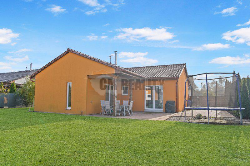 Dominantou domu je prostorný obývací pokoj s kuchyňským koutem, který nabízí přímý vstup na terasu a do zahrady.