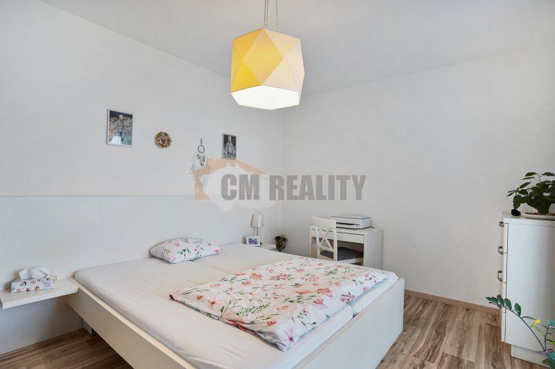 Ložnice je orientována do zahrady a je vybavena vestavěnými skříněmi na míru.
